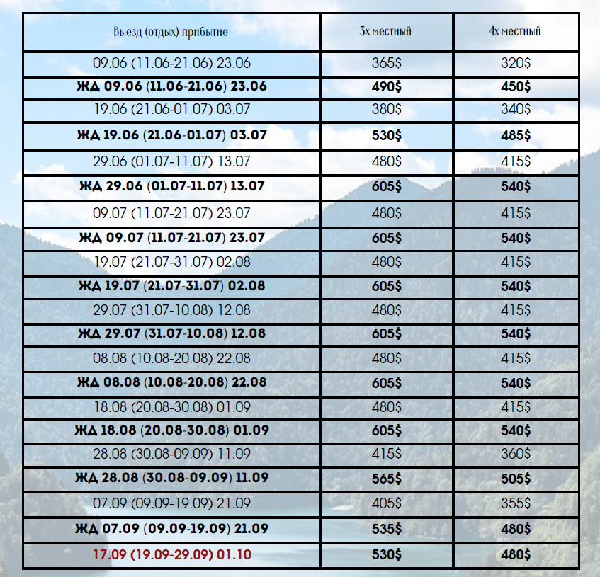 17.09 ( комби) — проезд автобусом в сторону Абхазии и поездом обратно (стоимость ЖД билета включена в стоимость, отдельно оплачивается туристическая услуга — 150BYN)