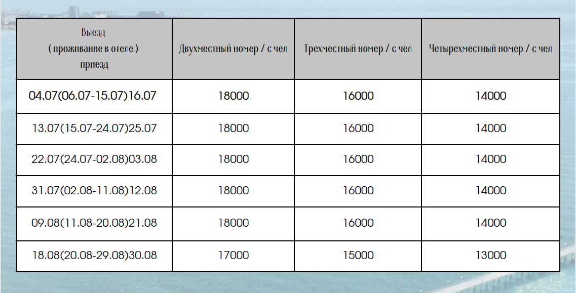 ***Детям до 3,99 без предоставления места в номере оплачивается только проезд