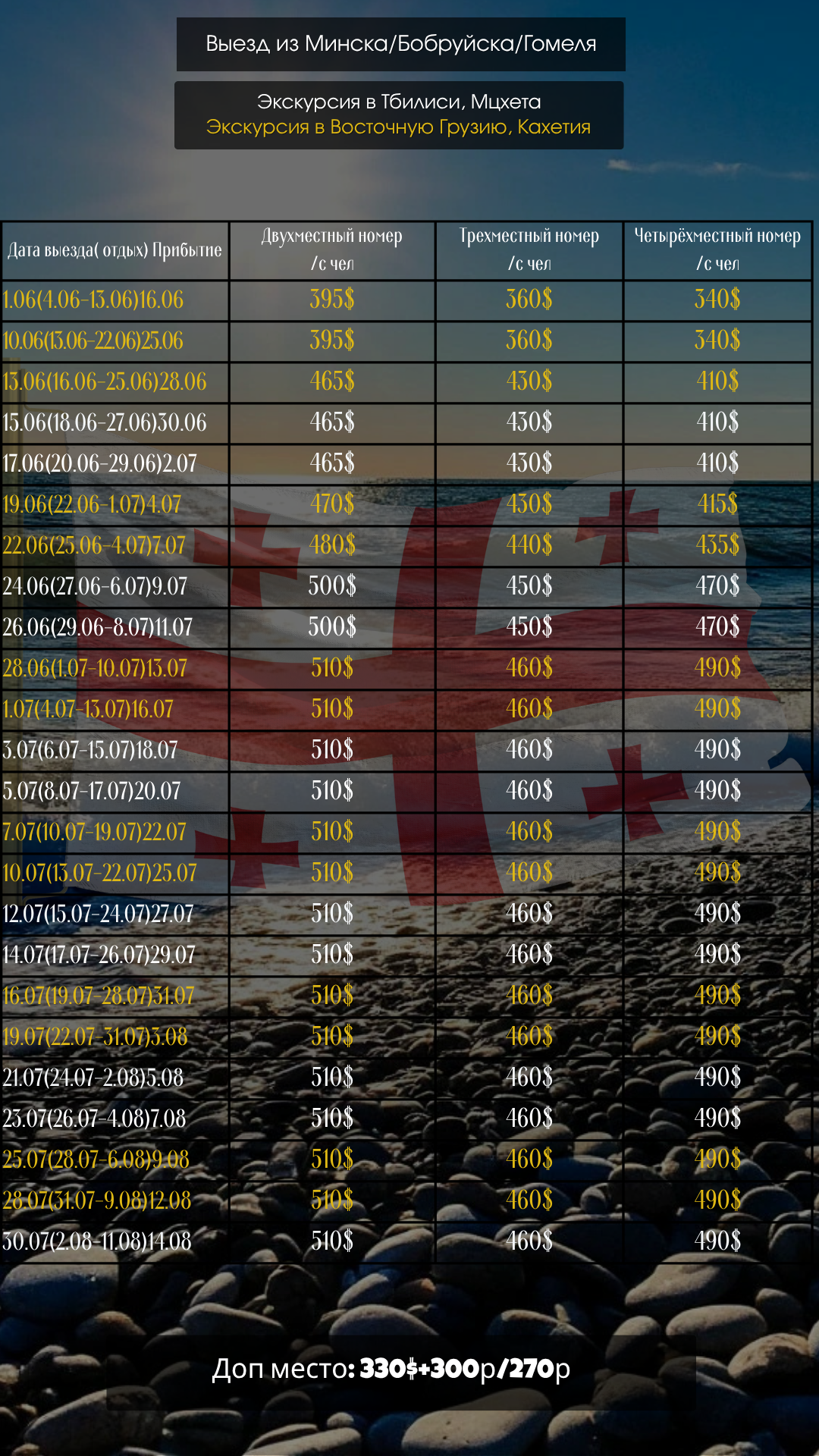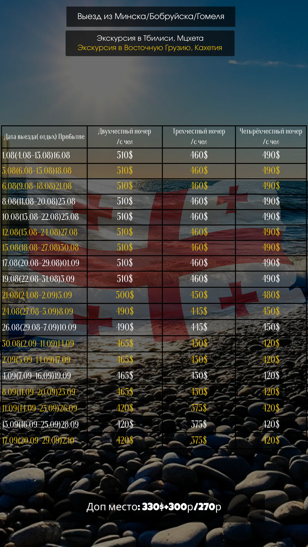 Цены на проживание для автобусного тура