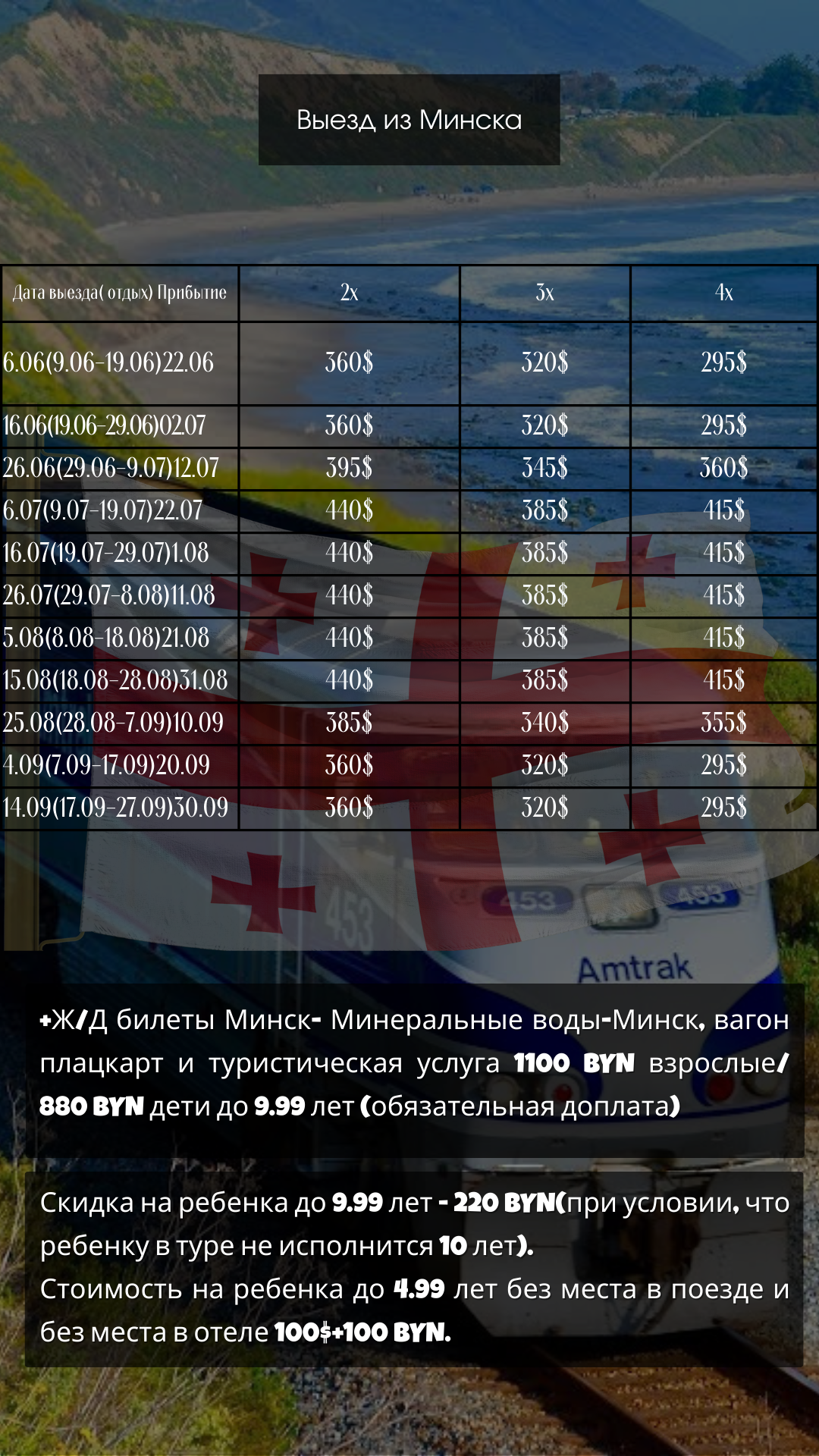 Цены на проживание для ЖД тура